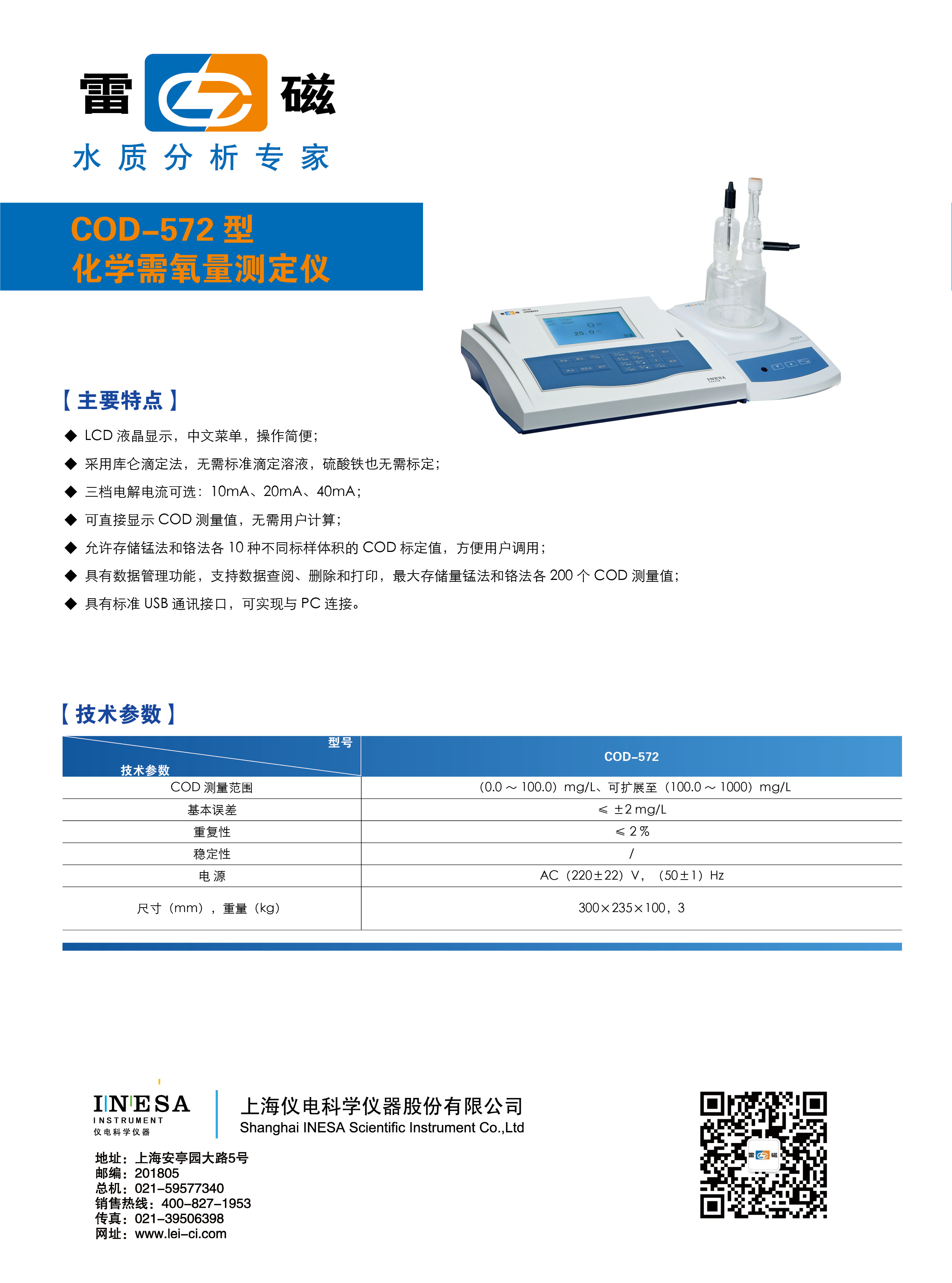 上海雷磁化學(xué)需氧量測(cè)定儀COD-572型